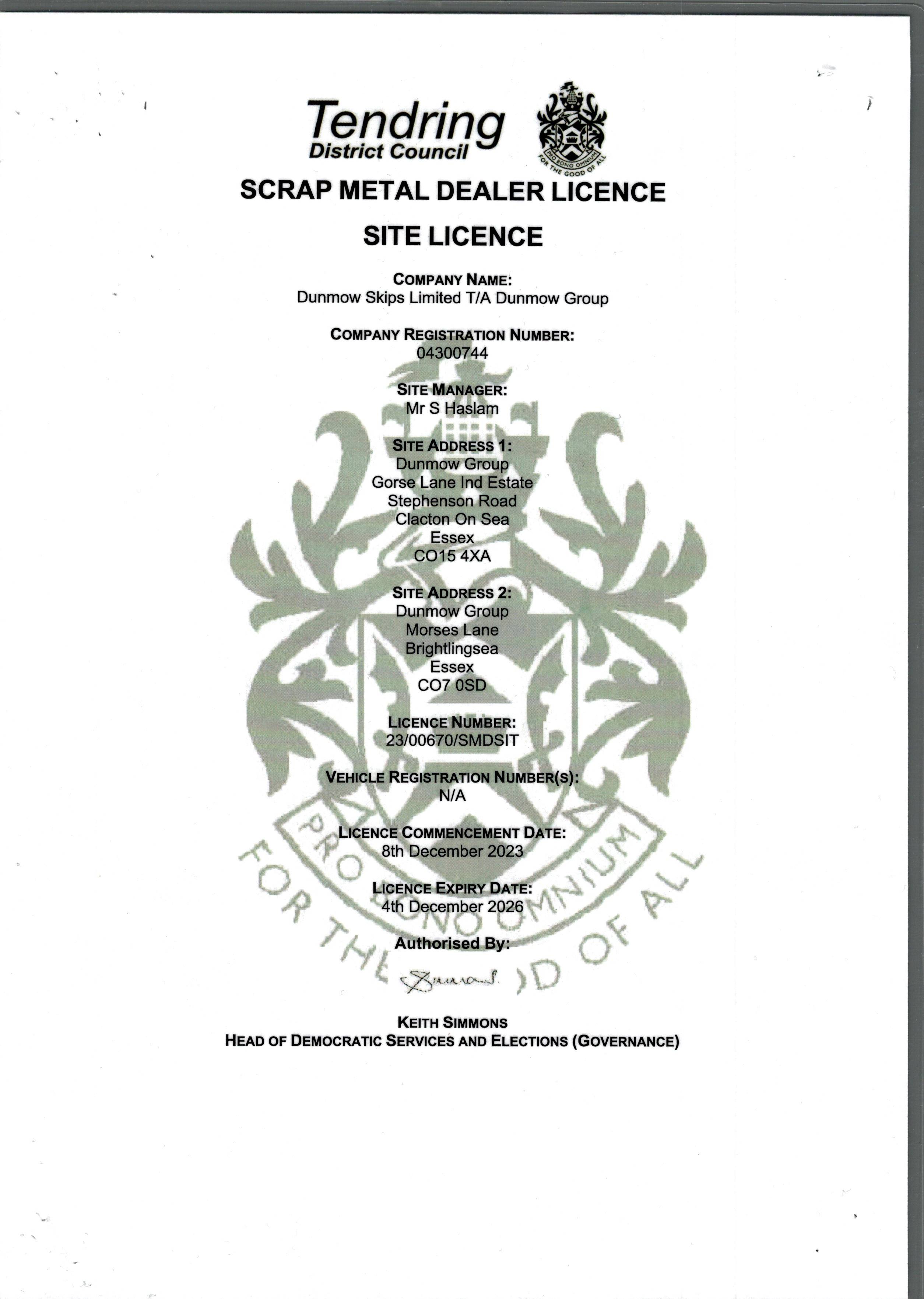 Knowing that you’re working with a responsible, licensed company is important. We understand that here at Dunmow Waste, which is why you can use this page to view our documents and certifications. Feel free to browse and print anything you may need, or get in touch with our team if you have any questions.
